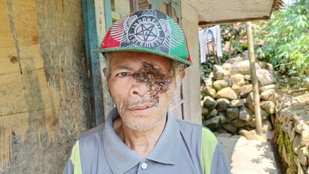 Padahal, Abah pernah dirujuk ke rumah sakit. Namun langkahnya terhenti karena tidak ada biaya. Sejak itu, luka di wajahnya hanya ia bilas dengan air seadanya.