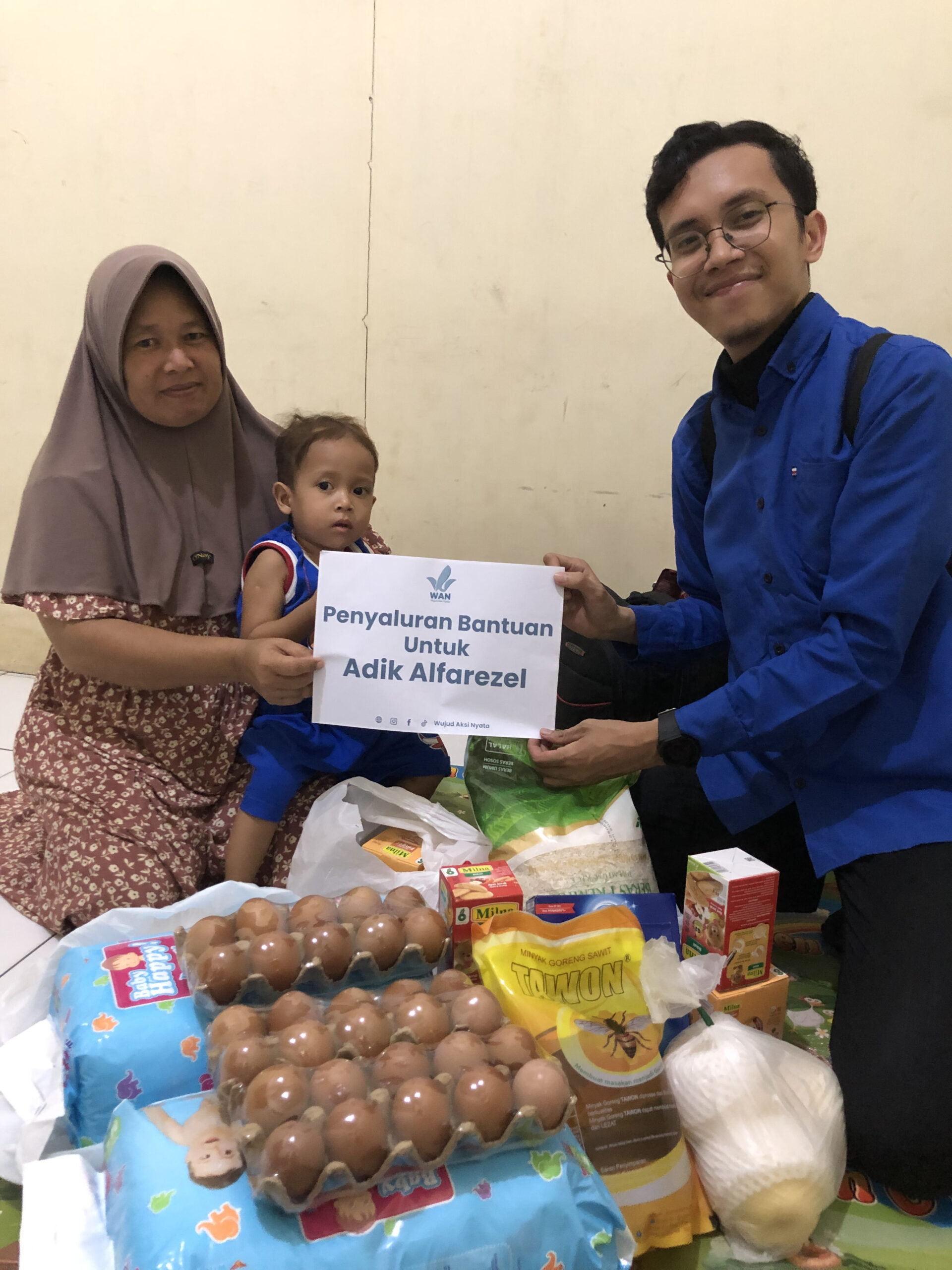 Kebaikan #Kawanaksi kami berbelanjakan kebutuhan adik Alfarezel seperti sembako, popok, dan barang-barang lainnya untuk kebutuhan sehari-hari adik Alfarezel.