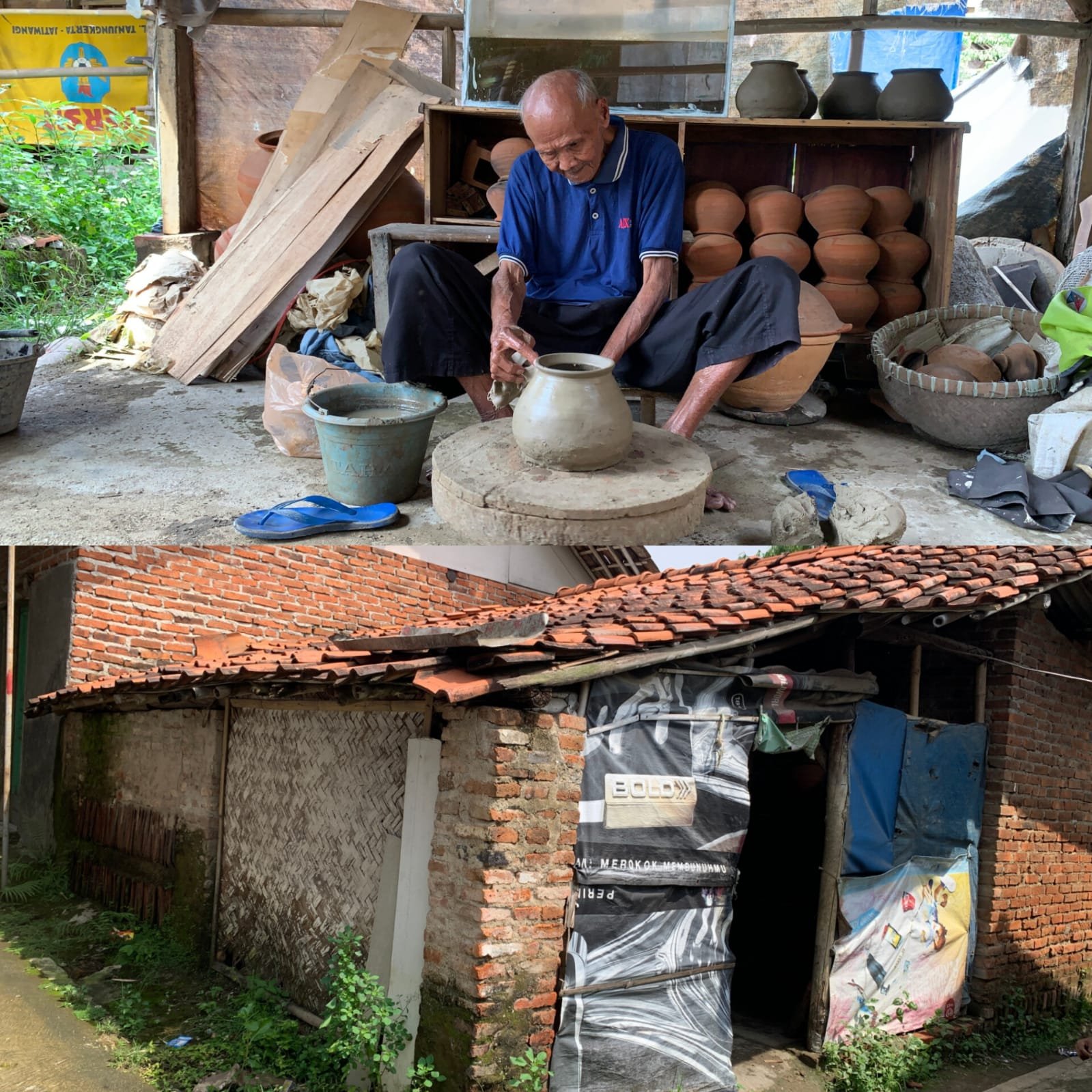Abah Oyot mengandalkan hidup dari kerajinan gentong tanah liat. Satu gentong dijual dengan harga Rp 5.500, dan itu pun tak selalu ada yang membeli. Kadang, ia hanya mendapat Rp 30.000 dalam seminggu. Jika tak laku, Abah tak punya uang untuk produksi.